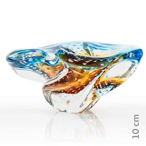 Centro De Mesa Em Cristal Murano Azul E Ambar São MarcosComprimento:20cmLargura:20cmAltura:10cmPeso:2730gProduzida 100% artesanalmente com a técnica secular e originária da Itália, a qual com muita maestria e criatividade são desenvolvidas e preservadas no Brasil pela Cristais São Marcos desde 1962. As escolhas das peças são versáteis e podem ser usadas para decorar casas e ambientes dos mais variados estilos. A tradição do Cristal Murano e a inovação em detalhes, formas e cores, trazem requinte para a decoração. O colorido do Muranoem especial, tornase um coringa na decoração e produzem um efeito muito bonito em locais com luz natural, não dependendo de nenhum outro elemento para se destacar. As peças em Cristal Murano, são atemporais, aposte nelas como a estrela da decoração ou ainda para harmonizar em combinações com diferentes artigos para compor um ambiente. Junto com as peças em Murano, leve ainda um pouco de história. Uma dica é misturar diferentes Muranos e criar sua coleção de arte particular. O cristal Murano, tornouse objeto de desejo por suas caracteristicas únicas. Sendo assim, com todas essas particularidades, ele é uma ótima escolha para decorar, colecionar e ainda presentear com classe e sofisticação.
