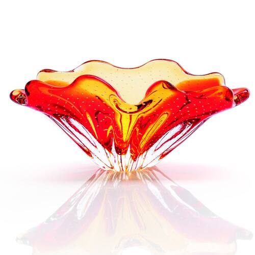 Centro De Mesa Em Cristal Murano Vermelho São Marcos Comprimento:30cm Largura:12cm Altura:12cm Peso:2710g Produzida 100% artesanalmente com a técnica secular e originária da Itália, a qual com muita maestria e criatividade são desenvolvidas e preservadas no Brasil pela Cristais São Marcos desde 1962. As escolhas das peças são versáteis e podem ser usadas para decorar casas e ambientes dos mais variados estilos. A tradição do Cristal Murano e a inovação em detalhes, formas e cores, trazem requinte para a decoração. O colorido do Muranoem especial, tornase um coringa na decoração e produzem um efeito muito bonito em locais com luz natural, não dependendo de nenhum outro elemento para se destacar. As peças em Cristal Murano, são atemporais, aposte nelas como a estrela da decoração ou ainda para harmonizar em combinações com diferentes artigos para compor um ambiente. Junto com as peças em Murano, leve ainda um pouco de história. Uma dica é misturar diferentes Muranos e criar sua coleção de arte particular. O cristal Murano, tornouse objeto de desejo por suas caracteristicas únicas. Sendo assim, com todas essas particularidades, ele é uma ótima escolha para decorar, colecionar e ainda presentear com classe e sofisticação.