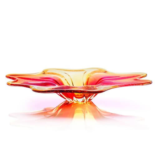 Centro De Mesa Em Cristal Murano Vermelho São Marcos Comprimento: 68cm Largura: 38cm Altura: 12cm Peso: 5940g Produzida 100% artesanalmente com a técnica secular e originária da Itália, a qual com muita maestria e criatividade são desenvolvidas e preservadas no Brasil pela Cristais São Marcos desde 1962. As escolhas das peças são versáteis e podem ser usadas para decorar casas e ambientes dos mais variados estilos. A tradição do Cristal Murano e a inovação em detalhes, formas e cores, trazem requinte para a decoração. O colorido do Muranoem especial, torna-se um coringa na decoração e produzem um efeito muito bonito em locais com luz natural, não dependendo de nenhum outro elemento para se destacar. As peças em Cristal Murano, são atemporais, aposte nelas como a estrela da decoração ou ainda para harmonizar em combinações com diferentes artigos para compor um ambiente. Junto com as peças em Murano, leve ainda um pouco de história. Uma dica é misturar diferentes Muranos e criar sua coleção de arte particular. O cristal Murano, tornou-se objeto de desejo por suas características únicas. Sendo assim, com todas essas particularidades, ele é uma ótima escolha para decorar, colecionar e ainda presentear com classe e sofisticação. Ean: 7894728636824