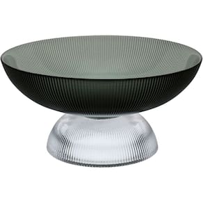 Altura: 12 cm Largura: 25 cm Profundidade: 25 cm Peso: 1,24 Kg Diâmetro da Base: 14,5 cm Diâmetro do Corpo: 25 cm Diâmetro do Topo: 25 cm Material: Vidro Cor: Fumê
