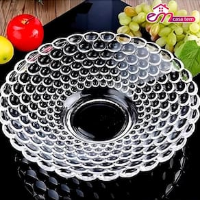 Centro de Mesa Fruteira Vidro Bubble Transparente 36cm Em Casa Tem