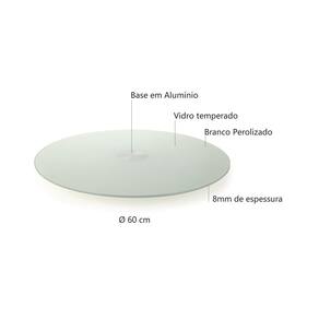 Centro de Mesa Giratório Ø 60cm em Vidro e Alumínio - Branco Perolizado - Forma Collection
