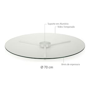 Destaque-se com este centro de mesa giratório de vidro Forma, adicionando um toque de sofisticação e funcionalidade à sua decoração. Com um diâmetro generoso de 70cm e uma espessura robusta de 8mm, este centro de mesa é projetado para impressionar.