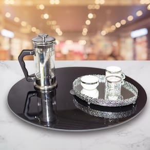 O Centro de Mesa Giratório Vidro Temperado 8mm Preto 60cm é um produto moderno e inovador que adiciona muito conforto e praticidade à sua mesa. Com ele, você não vai precisar levantar da cadeira ou se esticar sob a mesa, basta girar o prato e pronto, os alimentos estarão sempre à mão. Além disso, ele acrescenta um toque de sofisticação e praticidade no café da manhã, almoço e jantar.