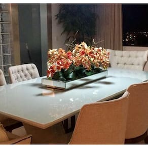 Modelo: Centro de mesa espelhado com base de espelho prata inferior para deixar a bandeja mais alta