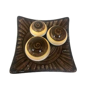 Centro de mesa prato 3 em cerâmica decor - marrom Centro de mesa prato com 3 em cerâmica decorativa Centro de mesa prato com 3 em cerâmica ecológica decorativa de alta qualidade e durabilidade com acabamento diferenciado, inspirador e moderno. O produto em cerâmica é uma belíssima peça atemporal, sendo ótimo para entusiastas e profissionais da decoração, pois garante charme, elegância, modernidade e sofisticação. Repagine e decore a sua casa, cozinha, sala de jantar, sala de estar, aparadores e mesas em gerais, deixando-as com um clima agradável, alegre e descontraído, sendo também uma ótima opção de presente. Dimensões: - altura: 12 cm x largura: 20 cm x comprimento: 20 cm. Características do produto: - centro de mesa prato com 3 em cerâmica ecológica de alta qualidade e durabilidade com pintura artesanal. - produzido por artesões profissionais seguindo um padrão de qualidade que atenda o gosto dos nossos clientes Cuidados: - recomendamos o uso de pano levemente umedecido para sua limpeza. do produto: - o produto é muito bem acomodado dentro da caixa, e super embalado para evitar quebras, ainda assim possuímos um sistema de e troca. Imagens meramente ilustrativas - produto artesanal, podendo variar de cor e/ou tonalidade Marca: Não Informado