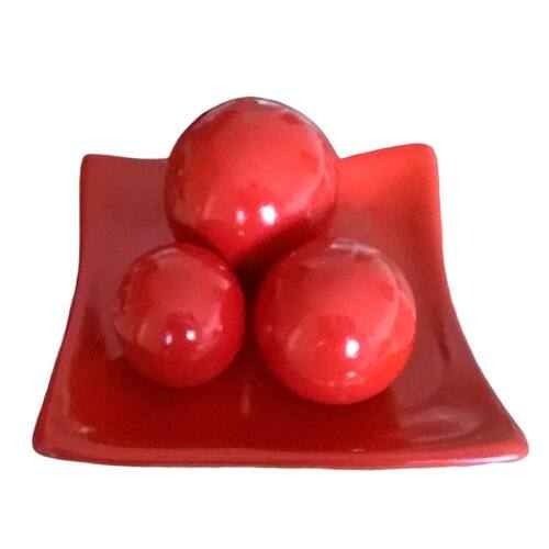 Centro de mesa prato 3 esferas em cerâmica decor - vermelha Centro de mesa prato com 3 esferas em cerâmica decorativa