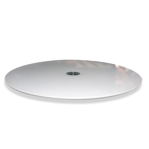Prato com sistema giratório, design exclusivo com chanfro polido , duplo sistema de rolamentos, com muita resistência, beleza e durabilidade. Acrescenta a mesa um toque de sofisticação e praticidade no café da manhã, almoço, jantar, pizza, frutas e bebidas. Com recipientes quentes, evita a queima de toalhas e mesas. O prato giratório pode ser utilizado também das seguintes formas: Expositor para lojas: perfumes, cristais, e ótimo para confeitar bolos. - Acompanha Batentes de Silicone de apoio. - Recomendamos que sobre espaço livre entre a borda do Tampo de sua mesa e a borda do Prato Giratório centralizado, entre 30 a 45 cm - Comodidade, Praticidade e Beleza aliadas em um único produto