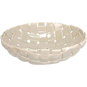Altura:9,5cm Largura: 33 cm Profundidade: 33 cm Peso: 1,528 Kg Diâmetro da Base: 12 cm Diâmetro do Topo: 32 cm Material: Ceramica Cor: Marfim