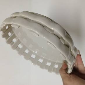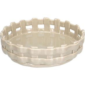 Altura: 6 cm Largura: 21 cm Profundidade: 21 cm Peso: 0,73 Kg Diâmetro da Base: 18 cm Diâmetro do Corpo: 21 cm Diâmetro do Topo: 20,5 cm Material: Ceramica Cor: Marfim