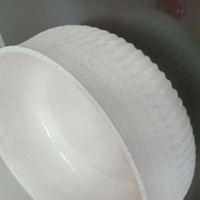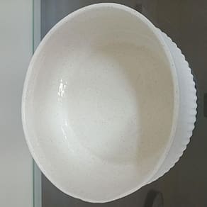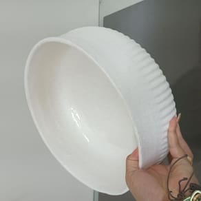 Altura: 11,5 cm Largura: 28,5 cm Profundidade: 28,5 cm Peso: 2,71 Kg Diâmetro da Base: 24,5 cm Diâmetro do Corpo: 28,5 cm Diâmetro do Topo: 28,5 cm Material: Ceramica Cor: MARFIM