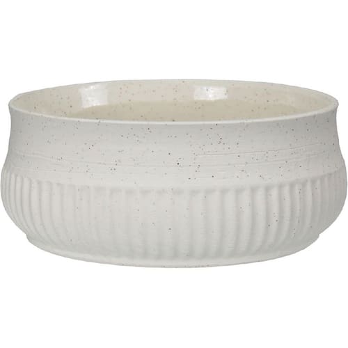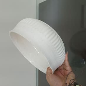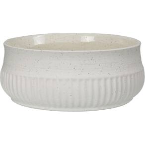 Altura: 8,5 cm Largura: 20,5 cm Profundidade: 20,5 cm Peso: 1,19 Kg Diâmetro da Base: 18,5 cm Diâmetro do Corpo: 20,5 cm Diâmetro do Topo: 20,5 cm Material: Ceramica Cor: MARFIM