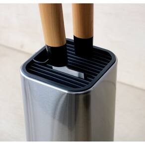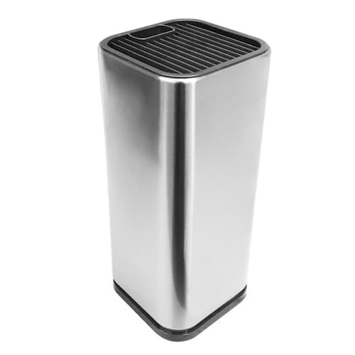 faca. Revestimento externo em aço inox. Desmontável para facilitar limpeza. Pode guardar de 06 a 08 facas, dependendo do tamanho.