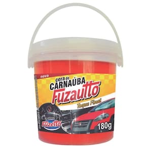 Cera carnaúba fuzetto 180 gramas limpa dá brilho recupera peças plásticas ressecadas como nunca para todo tipo de plástico ressecado modo de usar: aplique com uma esponja sem exagero e logo após retire o excesso com um pano limpo. Pronto só passar um pano e dar brilho na peça. Conteúdo da embalagem: 1 cera carnaúba fuzetto +um lava carro especial. Aprovado por quem usa. Produto certificado e.