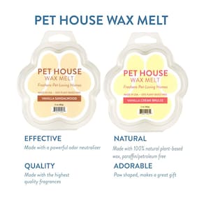 - FORMULAÇÃO QUE ACEITA ANIMAIS DE ESTIMAÇÃO — Os derretimentos de cera Pet House aceitam animais de estimação e não contêm corantes, ftalatos, parafina ou parabenos. Especialmente formulados para remover odores de animais de estimação, nossos derretimentos de cera de soja à base de plantas/naturais são extremamente eficazes e podem ser utilizados em praticamente qualquer aparelho de fusão ou aquecedor de cera.