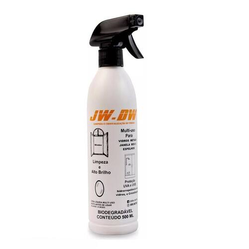 limpeza a seco, cristalização, brilho e proteção que repele a sujeira de vidros e metais. Acabamento impecável para box de banheiros, janelas, metais e muitas outras superfícies protege a pintura criando uma película protetora com duração média de 1 até 2 meses de ação hidrorrepelente. Produz intenso brilho nos vidrose metal. Restabelece o lustre e não causa embaçamento fácil, prático e rápido de aplicar. Proteje os vidros criando uma película protetora. Benefícios: - zero de água para lavar o seu carro - sustentável, não agride o meio ambiente - pode ser utilizado para limpar fogão, geladeira com menos esforço - pode ser utilizado em plásticos, vidros e metais em geral. - dá brilho em metais. Modo de aplicar: usar duas flanelas de microfibra, uma para aplicar o produto e tirar a sujeira e outra sem o produto para finalizar o brilho e proteção. Utilizar o produto sempre na sombra e com a pintura fria. Produto biodegradável sem abrasivos e ecologicamente correto. Composição: cera microcristalina, cristalizador de vidro, antioxidantes, água deionizada, fragrância, emulsionante alcalinizante, aditivos e conservantes. Marca: Jw-Dw