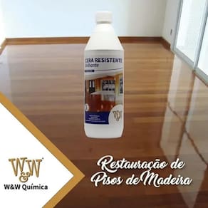 Cera Piso Madeira Brilhante Resistente 1L W&w + Aplicador Comprando o produto você vai estra levando O kit Cera Resistente Brilhante Piso de madeira taco assoalhos + Aplicador A Cera Resistente Brilhante W&W é uma cera restauradora para pisos de madeira formulada com polímeros encapsulados de alta resistência à base de água. Pode ser aplicada em diversos tipos de pisos danificados, opacos e riscados como:Madeiras;Laminados;Carpetes de madeira;Ardósia;Paviflex;Granilite;Pedras Naturais;Cimentados;Cerâmicos não esmaltados. BENEFÍCIOS:- Alta resistência, proporcionando uma baixa necessidade de manutenção;- Resistência ao atrito;- Cobre riscos superficiais em pisos de madeira;- Pode ser usada em pisos de madeira, como assoalhos, tacos, piso pronto engenheirado e sobre todos tipos de vernizes aplicados;- Esta cera pode ser usada para restaurar pisos residenciais, comerciais e industriais em ambientes internos com acabamento brilhante. INFORMAÇÕES TÉCNICAS:- Formulado com polímeros acrílicos e com alto teor de sólidos, a base dágua (sem solventes);- O rendimento pode variar entre 40m a 50m. MODO DE USAR: PRECAUÇÕES:Conserve fora do alcance das criança e animais domésticos. Não ingerir. Evite a inalação, aspiração e contato com os olhos e a pele. Em caso de contato com os olhos ou com a pele, lave imediatamente com água em abundância. Em caso de ingestão, não provoque vômito e consulte imediatamente o Centro de Intoxicações ou o médico levando o rótulo do produto. Evite o contato prolongado com a pele. Depois de utilizar este produto, lave e seque as mãos. PRAZO DE VALIDADE:24 meses de validade