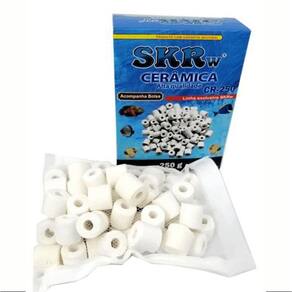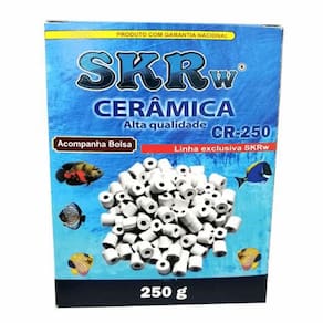 Ceramica skrw cilindrica com bolsa cr- 250 250g Cerâmica skrw cilindrica cr-250 250g A cerâmica é um meio de cultura de bactérias nitrificantes para todos os sistemas de filtragem biológica. Sua porosidade prolifera as bactérias necessárias para o cultivo do seu aquário. Modo de usar: Colocar dentro do sistema de filtragem de modo que a maior quantidade de água possível passe pela cerâmica. 3 gramas de cerâmica por litro de água Acompanha bolsa Medidas Altura: 12cm Largura: 5cm Comprimento: 8cm Peso: 250g