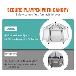 - Incrivelmente espaçoso: cercadinho espaçoso para bebês VEVOR de 59,8" x 59,8" com dossel — o exclusivo parque infantil feliz para seu bebê. Ele oferece amplo espaço para seu filho engatinhar, brincar, brincar e crescer livremente. Deixe-os explorar o mundo com segurança enquanto liberam suas mãos.