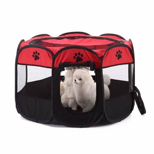 Cercadinho Para Cachorros Gatos Dobrável Casinha Portátil Cor: Vermelha Este cercadinho para pets, como cão, gato, coelho e hamster, é uma solução prática e conveniente para criar um espaço seguro e delimitado onde seu animal de estimação possa brincar, descansar e se sentir protegido. Por ser dobrável e de fácil montagem, este cercadinho é especialmente útil em situações em que você precisa conter seu pet temporariamente, como em viagens, acampamentos, visitas a amigos ou familiares, ou mesmo em casa para criar uma área controlada.
