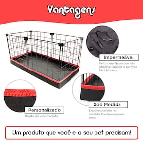 CERCADO ARAMADO PORQUINHO DA ÍNDIA 30X120 CM BRANCO COM BANDEJA HIGIÊNICA IMPERMEÁVELPara você que ama o seu Pet e deseja proporcionar o melhor lugar para ele, os cercados aramados são a sua melhor opção. Eles são compostos de telas aramadas de aço e conectivos de plástico, que é a combinação ideal para uma melhor organização, durabilidade e segurança para o seu animalzinho, além de se adaptar muito bem ao ambiente.É importante que o Pet tenha espaço suficiente para ficar confortável no seu dia a dia, por isso a escolha do cercado deve ser feita com cuidado.Nesse modelo, o cercadinho pet acompanha um tapete higiênico para facilitar a limpeza do espaço. Além desse benefício, a bandeja para cercado oferece outras vantagens como a facilidade para guardar e manusear, seu encaixe perfeito e o fato de ser impermeável, não absorvendo líquidos.RECOMENDAÇÕES DE USO:- Tamanho ideal para até 3 Porquinhos da ÍndiaDIMENSÕES APROXIMADAS: - Largura: 30cm - Comprimento: 120cm - Altura: 30cmCARACTERÍSTICAS: - Cor: Branco - Material: Aço - Telas: 30x30cm e 30x40cm - Malha: 5cm - Modelo: Simples - Forração: Tapete Higiênico - Fundo com Telas: Não* Recomendamos que sempre verifique antes da escolha se o seu PET não atravessa a malha das telas (buracos) e/ou se ele não salta pelo cercado.* Possuímos os mais variados tipos de cercados em modelos e tamanhosITENS INCLUSOS:- Kit de telas e conectivos para montagem de um cercado aramado 30x120x30cm- 01 Tapete Bandeja Higiênico * Procurou um modelo e não encontrou? Tem algum projeto específico? Não sabe como aumentar seu cercado? Deixe-nos saber e vamos te ajudar!OBSERVAÇÕES:- O produto vai desmontado para ser montado no local e igual a imagem do anúncio;- Recomendamos para porquinhos da índia e coelhos, cercados com forração (Soft/Lona/Polionda/Tapete Higiênico);- Para colocação dos conectivos é preciso fazer um pouco de pressão, por isso sugerimos o uso de um martelinho de borracha (não acompanha o produto). - Imagens ilustrativas - Não nos responsabilizamos pelo uso inadequado do produtoNão deixe de conhecer nossos outros produtos! Marca: Iguanna