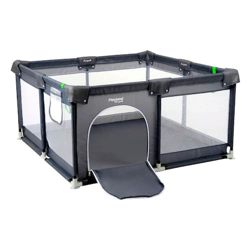 Um dos diferenciais do modelo Playland Gray é a abertura lateral com zíper, que possibilita que a criança entre e saia de forma independente, estimulando seu senso de conquista e aprendizado. O cercado também acompanha pegadores internos, ideais para ajudar nos primeiros passos, promovendo desenvolvimento motor e equilíbrio.
