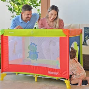 Com abertura lateral com zíper, travas de segurança nos 4 lados, base acolchoada e mosquiteiro, é prático de transportar com sua bolsa inclusa. As laterais teladas permitem visão total da criança e os desenhos coloridos estimulam a imaginação, tornando a diversão ainda mais completa!