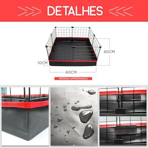 CERCADO ARAMADO PORQUINHO DA ÍNDIA 60X60 CM PRETO COM BANDEJA HIGIÊNICA IMPERMEÁVELPara você que ama o seu Pet e deseja proporcionar o melhor lugar para ele, os cercados aramados são a sua melhor opção. Eles são compostos de telas aramadas de aço e conectivos de plástico, que é a combinação ideal para uma melhor organização, durabilidade e segurança para o seu animalzinho, além de se adaptar muito bem ao ambiente.É importante que o Pet tenha espaço suficiente para ficar confortável no seu dia a dia, por isso a escolha do cercado deve ser feita com cuidado.Nesse modelo, o cercadinho pet acompanha um tapete higiênico para facilitar a limpeza do espaço. Além desse benefício, a bandeja para cercado oferece outras vantagens como a facilidade para guardar e manusear, seu encaixe perfeito e o fato de ser impermeável, não absorvendo líquidos.RECOMENDAÇÕES DE USO:- Tamanho ideal para 1 Porquinho da ÍndiaDIMENSÕES APROXIMADAS: - Largura: 60cm - Comprimento: 60cm - Altura: 30cmCARACTERÍSTICAS: - Cor: Preto - Material: Aço - Telas: 30x30cm - Malha: 5cm - Modelo: Simples - Forração: Tapete Higiênico - Fundo com Telas: Não* Recomendamos que sempre verifique antes da escolha se o seu PET não atravessa a malha das telas (buracos) e/ou se ele não salta pelo cercado.* Possuímos os mais variados tipos de cercados em modelos e tamanhosITENS INCLUSOS:- Kit de telas e conectivos para montagem de um cercado aramado 60x60x30cm- 01 Tapete Bandeja Higiênico * Procurou um modelo e não encontrou? Tem algum projeto específico? Não sabe como aumentar seu cercado? Deixe-nos saber e vamos te ajudar!OBSERVAÇÕES:- O produto vai desmontado para ser montado no local e igual a imagem do anúncio;- Recomendamos para porquinhos da índia e coelhos, cercados com forração (Soft/Lona/Polionda/Tapete Higiênico);- Para colocação dos conectivos é preciso fazer um pouco de pressão, por isso sugerimos o uso de um martelinho de borracha (não acompanha o produto). - Imagens ilustrativas - Não nos responsabilizamos pelo uso inadequado do produtoNão deixe de conhecer nossos outros produtos! Marca: Iguanna