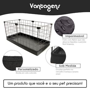 CERCADO ARAMADO PORQUINHO DA ÍNDIA 90X90 CM BRANCO COM BANDEJA HIGIÊNICA IMPERMEÁVELPara você que ama o seu Pet e deseja proporcionar o melhor lugar para ele, os cercados aramados são a sua melhor opção. Eles são compostos de telas aramadas de aço e conectivos de plástico, que é a combinação ideal para uma melhor organização, durabilidade e segurança para o seu animalzinho, além de se adaptar muito bem ao ambiente.É importante que o Pet tenha espaço suficiente para ficar confortável no seu dia a dia, por isso a escolha do cercado deve ser feita com cuidado.Nesse modelo, o cercadinho pet acompanha um tapete higiênico para facilitar a limpeza do espaço. Além desse benefício, a bandeja para cercado oferece outras vantagens como a facilidade para guardar e manusear, seu encaixe perfeito e o fato de ser impermeável, não absorvendo líquidos.RECOMENDAÇÕES DE USO:- Tamanho ideal para até 3 Porquinhos da ÍndiaDIMENSÕES APROXIMADAS: - Largura: 90cm - Comprimento: 90cm - Altura: 30cmCARACTERÍSTICAS: - Cor: Branco - Material: Aço - Telas: 30x30cm - Malha: 5cm - Modelo: Simples - Forração: Tapete Higiênico - Fundo com Telas: Não* Recomendamos que sempre verifique antes da escolha se o seu PET não atravessa a malha das telas (buracos) e/ou se ele não salta pelo cercado.* Possuímos os mais variados tipos de cercados em modelos e tamanhosITENS INCLUSOS:- Kit de telas e conectivos para montagem de um cercado aramado 90x90x30cm- 01 Tapete Bandeja Higiênico * Procurou um modelo e não encontrou? Tem algum projeto específico? Não sabe como aumentar seu cercado? Deixe-nos saber e vamos te ajudar!OBSERVAÇÕES:- O produto vai desmontado para ser montado no local e igual a imagem do anúncio;- Recomendamos para porquinhos da índia e coelhos, cercados com forração (Soft/Lona/Polionda/Tapete Higiênico);- Para colocação dos conectivos é preciso fazer um pouco de pressão, por isso sugerimos o uso de um martelinho de borracha (não acompanha o produto). - Imagens ilustrativas - Não nos responsabilizamos pelo uso inadequado do produtoNão deixe de conhecer nossos outros produtos! Marca: Iguanna