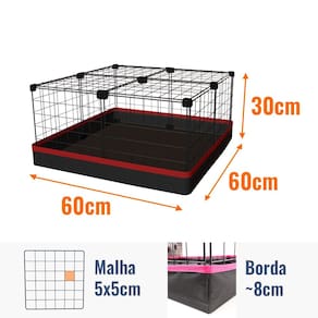 OBSERVAÇÕES: - O produto vai desmontado para ser montado no local e igual a imagem do anúncio; - Recomendamos para porquinhos da índia e coelhos, cercados com forração (Soft/Lona/Polionda/Tapete Higiênico); - Para colocação dos conectivos é preciso fazer um pouco de pressão, por isso sugerimos o uso de um martelinho de borracha (não acompanha o produto).