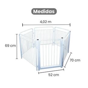 O Cercado tubular possui várias formas de montagem. Um produto Versátil e resistente, ideal para animais de pequeno e médio porte. Dobrável, ocupando assim, pouco espaço. Seu comprimento montado em linha reta é de 4,2mt. Pode ser montado conforme sua necessidade, além da possibilidade de simplesmente guardá-lo dobrando de uma forma que ocupe menos espaço.
