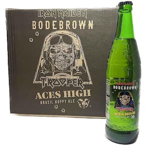 Cerveja aces high iron maiden 600ml hoppy ale bodebrown Iron maiden & bodebrown se unem para lançar a segunda cerveja oficial da banda no brasil, a phodástica trooper aces high, criação na qual os lúpulos e os maltes se misturam como uma agressiva manobra aérea etílica.