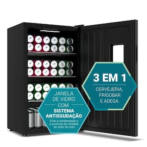 Esta Cervejeira 85W vai além do convencional. Seu sistema 3 em 1 oferece versatilidade incomparável: funciona como cervejeira, adega e frigobar, com controle de temperatura de -6°C a 18°C. O sistema antissudação e a resistência na porta garantem zero umidade interna e melhor conservação das suas bebidas.