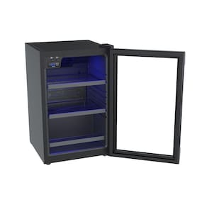 Design Sofisticado com Iluminação LED Azul: O acabamento em preto fosco, o puxador em alumínio escovado e a iluminação interna em LED azul transformam a exposição das suas bebidas em um verdadeiro show.