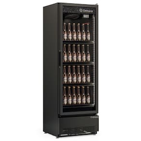 Refrigerador Vertical Linha Conveniência Carbono 445L GCBC45CB Gelopar. Conservação e exposição de bebidas, frios e laticínios. Temperatura regulável: -6°, -4°, +1°C ou +3°C (Modo Economia). Refrigeração: Ar forçado com evaporador aletado. Controlador eletrônico com indicador de temperatura. Degelo: Manual. Iluminação: LED (interna) perimetral vertical, com interruptor. Porta: Vidro duplo temperado baixo emissivo, com serigrafia e perfil slim. Fechamento automático. Carenagem inferior em aço pré-pintado preto. Prateleiras aramadas: 4 níveis reguláveis e inclináveis. Revestimento: Interno e externo em aço pré-pintado preto. Pés niveladores. Perfil porta etiquetas. CAPACIDADE: 445L. ARMAZENAGEM: 432 Latas 350ml, 280 Long necks 350ml ou 184 Garrafas 600ml. CONSUMO: 7,21kWh/dia. PESO 94kg. DIMENSÕES(CxAxL): 64,5x196,2x64cm. Equipamento certificado conforme Portaria Inmetro nº 371/2009. Refrigerador Vertical Linha Conveniência Carbono 445L GCBC45CB Gelopar é na Atau.
