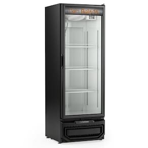 Cervejeira Vertical Porta De Vidro 410 Litros Gcb40v Gelopar Expositor Preto Gelopar 220v Cervejeira Vertical 410 Litros GCB40V Gelopar. Ideal para lanchonetes, bares, restaurantes e similares. Conservação e exposição de Cervejas e Bebidas (Água, Sucos e Refrigerantes). Temperatura regulável: -6a +3C (Modo Economia). Controlador eletrônico com indicador de temperatura. Refrigeração: Ar forçado com evaporador aletado. Degelo: Automático. Iluminação: 1 barra de LED interna (superior). Porta de vidro duplo temperado baixo emissivo (sem aquecimento). Prateleiras aramadas: 3 níveis reguláveis. Revestimento: Interno e externo em aço pré-pintado. Vidros sujeitos a condensação da umidade do ar. PORTAS: 1. FREQUÊNCIA: 60Hz. PLANO DE CARGA: 360 latas 350ml ou 156 garrafas 600ml. CAPACIDADE: 410 litros. CONSUMO: 4,64kWh/dia. PESO: 98kg. DIMENSÕES(CxAxP): 64,5x186x64,5cm. Equipamento certificado conforme Portaria Inmetro n 148/2022. Cervejeira Vertical 410 Litros GCB40V Gelopar é na Atau. Marca - Gelopar Modelo - GCB40V Capacidade - 410 Litros Frente - 64,5cm Altura - 186cm Profundidade - 64,5cm Temperatura - -6a +3C (Modo Economia) Peso - 98kg Portas - 1 Porta Prateleiras - 3