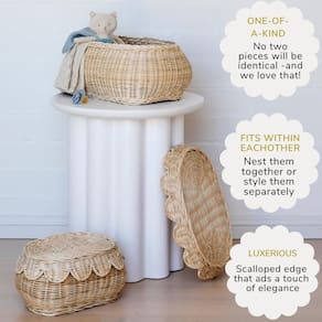 Cesta exclusiva de rattan com tampa! Cesta de vime, cesta de bebê, cesta de vime com tampa, cesta de berçário, cesta de vime redonda, cesta de vime redonda, cesta de armazenamento de vime, cesta de vime, serena e lírio, cesta de presente de vime, cesta de vime para banheiro, cesta de vime retangular, cestas com tampa, cesta de brinquedos de vime, cesta de armazenamento de vime com tampa, cesta de armazenamento para berçário de bebê, cesta de fraldas para berçário. y, conjuntos de cestas de vime, Cesta com tampa Serena Lily, Serena e Lily. Apresentamos orgulhosamente nossa cesta de armazenamento de vime com tampa! Se você está criando um berçário ecológico ou quarto infantil ou talvez procurando um presente de chá de bebê que seja um pouco diferente de qualquer outra pessoa, você está no lugar certo! Somos BEBE BASK, e nossos produtos são feitos especificamente com amor por qualquer pessoa que queira criar um espaço natural e boêmio. Nossa pequena cesta de vime com tampa é essencial para o berçário das meninas e pode ser usada por gerações futuras. Com estilo, sofisticação e um compromisso incrível com o meio ambiente, a cesta de brinquedos de vime é o novo item essencial. Nossa cesta de vime para crianças está na moda e essencial para o berçário boêmio de bebês. Nossa cesta de vime resistente é certificada pelo comércio justo e sustentável. Cada cesta de fraldas para berçário tem imperfeições naturais que criam sua beleza "única", para que você nunca encontre outra igual à sua. Fácil de limpar: a superfície do material da cesta de presente de vime natural pode ser facilmente limpa com um pano úmido e deixada secar ao ar livre em uma área aberta. A cesta para berçário tem variações de cesta para cesta devido à sua natureza exclusiva de voto manual. Nosso armário de armazenamento de cesta de vime é completamente feito à mão do início ao fim. - Acabou de aterrar! Descubra a cesta de tecido com tampa "Flora", a mais recente adição à coleção Bebe Bask: uma cesta de armazenamento de vime nova, projetada com elegância e conveniência em mente. Verifique o tamanho antes de fazer o pedido - Uma peça de declaração – Este lindo par de cestas de vime elevará qualquer canto da casa. Coloque o conjunto de cesta de vime juntos ou estilize-os separadamente. Verifique o tamanho antes de fazer o pedido: Grande 38 x 25 x 15 cm. Pequeno 28 x 20 x 12,7 cm. - Elegância natural: abrace a beleza delicada e duradoura da cesta de tecido. Meticulosamente trabalhada à mão de 100% vime com uma estrutura robusta de aço revestido a pó, combina harmoniosamente durabilidade e estilo - Multifuncional: as cestas redondas de vime têm uma tampa recortada moderna que adiciona um toque de sofisticação e elegância. Use a bela tampa como uma bandeja de exibição, bandeja de penteadeira ou bandeja de joias para maior funcionalidade - Adição elegante para o berçário: uma cesta redonda de vime com tampa que comprova conquistar a bagunça pode ser feita com muito estilo. A cesta para berçário contém todos os itens essenciais, desde fraldas e bonecos até brinquedos e tudo mais - Crie um oásis natural – Transforme seu berçário combinando sua cesta de vime com a tampa com a cesta de troca de fraldas e o organizador de fraldas da Bebe Bask em vime tecido - Cesta de chá de bebê de gênero neutro: esta cesta de vime moderna com tampa complementa qualquer espaço. Seja como presente como é ou encha-o com itens essenciais, "Flora" certamente será o melhor sucesso em qualquer chá de bebê. Adquira sua cesta de armazenamento para o berçário agora e traga alegria aos novos pais com este presente essencial para bebês! - 100% feito à mão pela Mamas para mamas: nossas mães artesãs vietnamitas trabalham no conforto de suas próprias casas, permitindo que cuidem de suas famílias enquanto criam belos conjuntos de cestas de vime. Ao escolher a BEBE BASK, você está apoiando as mães artesãs vietnamitas locais e suas famílias, criando uma renda sustentável e preservando a arte do artesanato - Garantia de devolução do dinheiro em 90 dias – nós protegemos. Se por algum motivo você não estiver totalmente satisfeito com a compra desta cesta de armazenamento de vime, sinta-se à vontade para entrar em contato conosco dentro de 90 dias e reembolsaremos ou alteraremos o produto sem questionar