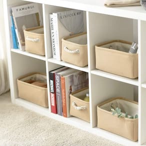 Cesta de armazenamento retangular TheWarmHome com duas alças de corda mantém o espaço limpo e organizado. Características - O material é feito de tecido grosso e mantém sua forma mesmo quando vazio e pode fazer com que esta cesta de armazenamento dure muito tempo. - Estrutura durável pode permitir que você coloque mais coisas pesadas. - Alças de corda de algodão para facilitar a colocação e retirada de prateleiras ou armário. - Forrado com um tecido fino de musselina cinza, é fácil de limpar, basta limpar com uma esponja ou pano úmido. Tamanho adequado para a maioria das situações, como armário, mesa e escritório para brinquedos. CDs, roupas, roupas íntimas Uso multiuso. Estas cestas de armazenamento de ornamentos são adequadas para armazenar livros, artes e artesanato, materiais de escritório, toalhas, roupas de inverno e assim por diante, ou servem como capas de DVD em prateleiras, baús de remédios em armários ou despensas, cestas de brinquedos sob a cama para crianças, estojos de cosméticos em cômodas, etc. Especificações da cesta mede 28 cm (C) x 19 cm (L) x 12 cm (A) material - exterior de juta / mistura de algodão - forro de linho Qualidade: conjunto de 6. - Mantenha sua casa organizada – Você ainda está preocupado com roupas, livros e brinquedos que geralmente se espalham por toda parte, ou roupas, sapatos, chapéus, lençóis ou alguns itens pequenos, etc., demais para serem classificados? Os compartimentos organizadores TheWarmHome podem ajudá-lo a organizar e liberar seu espaço físico. economize seu tempo de trabalho doméstico, criando um espaço quente para cada família - CAIXA DE ARMAZENAMENTO E PROFISSIONALMENTE E PRÁTICO – 29 L x 13 A. As caixas de armazenamento TheWarmHome Cube fornecem uma solução para a maioria das necessidades: organizar e armazenar produtos para bebês, roupas, sapatos, brinquedos infantis, produtos para animais de estimação, armazenamento de artigos de higiene, lavanderia, toalha, cobertor, lenços, chapéus, cachecóis, meias, chaves ou outros itens pequenos. Pode ser utilizado no quarto, sala de estar, sala de estudo, banheiro, cozinha, escritório, prateleira, armário e armários. Excelente escolha para manter seu espaço agradável, arrumado e organizado - Cesta decorativa, artística e de presente – Como um item essencial para organização e armazenamento doméstico, as caixas organizadoras da TheWarmHome são a cesta de presente perfeita. 1. As caixas TheWarmHome têm grande capacidade de armazenamento. 2. Design minimalista e cor cinza neutra podem ser integrados em qualquer decoração e estilo de casa. 3. Contraste com outros materiais, tecido mais macio e dobrável, fácil de armazenar e limpar, melhor uso em casa. 4,10 anos + fábrica profissional, use o melhor tecido EVA, TheWarmHome, aqueça sua casa - Dica de cuidado – Design dobrável para economizar espaço, antes de usar para tirar as rugas da caixa de armazenamento de tecido: encha os cubos de armazenamento de tecido com cobertores e travesseiros por alguns dias e as cestas tomarão a forma ou passe a ferro a vapor em temperatura baixa; recomenda-se limpar a cesta com um pano macio e seco. Limpe com água leve e sabão quando necessário. Não recomendado lavar à máquina, pois há armação de metal - SERVIÇOS AO CLIENTE E GARANTIA - As caixas de organização TheWarmHome oferecem melhor valor e conveniência de compra. Economize seu dinheiro, tempo e esforço. Prometemos fornecer os melhores serviços pós-venda e garantia de 12 meses sem preocupações. O que você está esperando? Organizadores de armário e caixa de armazenamento TheWarmHome são a melhor escolha de Natal/Halloween/Ação de Graças/recém-nascido/aniversário/presente de casamento para crianças/esposa/mãe/marido/amigos. Venha e experimente a caixa de armazenamento TheWarmHome para armário!