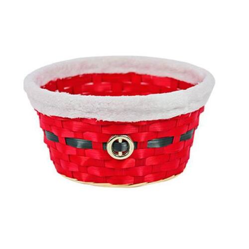 Cesta De Bambu Redonda Vermelho Cinto Preto E Borda Branca