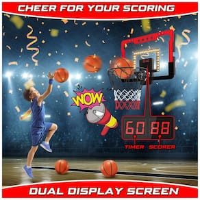 Instalação Simples e Baterias Inclusas: Nossa cesta de basquete foi projetada para ser fácil de instalar, com instruções claras e todas as ferramentas necessárias já inclusas. Basta pendurá-la sobre qualquer porta de tamanho padrão na sua casa, dormitório, escritório ou até mesmo na cerca do quintal. O design prático permite armazenar e mover a cesta com facilidade, para que você possa jogar basquete onde e quando quiser. Além disso, as baterias já estão inclusas, facilitando a diversão imediata!