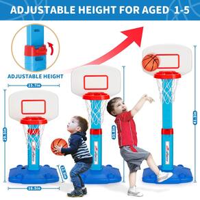 Cesta de basquete infantil ao ar livre, cesta de basquete infantil para crianças de 1 a 3 anos, brinquedos esportivos para crianças de 1 a 3 anos de idade e acima, gol de basquete portátil para meninos e meninas, presentes de aniversário de Natal para 1 2 3 4 anos de idade - Cesta de basquete ajustável para crianças: Nossa mini cesta de basquete interna é ótima para crianças de 1 a 3 anos de idade. Existem 5 compartimentos na haste para ajustar sua altura de 29,5 a 105 cm, o que é perfeito para crianças em crescimento de 1, 2, 3, 4, 5 anos de idade. Aumente a altura da cesta de basquete infantil para aumentar a dificuldade à medida que seus filhos crescem, exercitando as habilidades de tiro e mergulho das crianças. Incríveis brinquedos esportivos e ao ar livre para crianças de 1 a 5 anos. - Fácil de montar: este gol de basquete infantil inclui 1 cesta de basquete para bebê, 3 mini bolas de basquete macias infláveis, 1 bomba de bola e todas as ferramentas necessárias. Você pode facilmente concluir a montagem e jogar imediatamente. Muito portátil, você pode desfrutar deste brinquedo de basquete com a família e amigos em qualquer lugar. As crianças podem desfrutar do jogo de basquete dentro de casa ou começar o jogo de basquete na piscina ao ar livre, tornando o sonho de cada estrela do basquete em realidade! - Design seguro e resistente: nossa cesta de basquete infantil pequena é feita de plástico ABS de alta qualidade, leve, fácil de transportar e durável. As bolas de toque suave e macio se encaixam bem nas mãos das crianças. Você também pode adicionar água ou areia à base e colocar um saco de areia ou outros objetos pesados na base para aumentar a estabilidade. A base estável garante um período de brincadeiras sem preocupações para crianças. Vamos criar memórias de infância mais felizes. - Melhore as habilidades motoras das crianças: leve nossa cesta de basquete de brinquedo para o seu filho, ela despertará o interesse das crianças pequenas por esportes. Ajudando-os a melhorar as habilidades motoras e a coordenação óculo-manual. Talvez eles se tornem a estrela do basquete no futuro! Este brinquedo de basquete infantil é um brinquedo externo perfeito para crianças de 3 a 5 anos, seu filho pode se divertir com ele por horas. Promove a independência e a confiança das crianças. Adequado para jogos em família, atividades ao ar livre e festas esportivas. - Presente ideal para meninos e meninas: Este é um ótimo presente que incentivará meninos e meninas a ficarem em forma e se manterem saudáveis. Presente perfeito para aniversário, Natal, volta às aulas, festas na piscina de verão. As crianças vão enlouquecer com esse gol legal de basquete infantil, vamos pegar todos os momentos surpresa do seu bebê. Cesta de basquete ajustável para crianças de 2, 3, 4, 5, 6 anos de idade. Bom para ambientes internos, externos e à beira da piscina.
