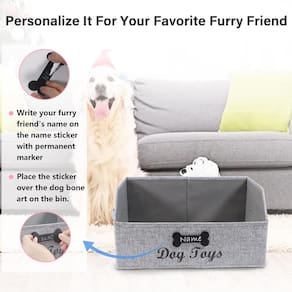Melhor acessibilidade: Projetado para facilitar o acesso aos itens armazenados sem ter que puxar constantemente as caixas de prateleiras, armários, embaixo de trocadores, despensa ou em cima de cômodas. Estilo trapézio com ângulo superior aberto com frente abaixada e encosto mais alto. Acabamento fino para manter a forma de longa duração: As costuras das caixas de armazenamento são costuradas com precisão e segurança. A firmeza e durabilidade do material, bastante resistente e a peça de construção inferior ajudam a manter a forma da caixa em sua forma. Design requintado parece mais substancial: As caixas de armazenamento simples e bonitas se encaixam em estilos variados de decoração doméstica, não apenas práticos, mas também tão bonitos quanto obras de arte, fazem sua casa parecer fresca e nova. Fácil de usar e armazenar: O organizador é fácil de montar para ser um saco de cubos, leve e macio, mas resistente o suficiente para ficar em pé sozinho. É capaz de armazenar toneladas de coisas e pode durar muito tempo. Dobrável para facilitar o armazenamento se não estiver em uso, basta dobrar a cesta para baixo para economizar espaço quando não estiver em uso ou quando precisar transportar. - 1. Personalize para o seu amado amigo: nosso cubo de brinquedo para cães pode ser personalizado com adesivo de nome (3 peças), que está incluído no pacote de compra. Este adesivo foi projetado para caber perfeitamente no ícone de osso de cachorro. Isso é muito adequado para famílias com vários filhotes classificarem seus próprios itens. - 2. Design elegante: a cor cinza natural combina perfeitamente com a decoração da sua casa ou escritório. Funciona muito bem nas prateleiras, sob mesas de café e em dormitórios! O armazenamento de brinquedos para cães para organizar infinitas possibilidades de armazenamento, como revistas, livros, toalhas de banheiro, brinquedos, roupas e qualquer coisa que você precise armazenar. - 3. Dobrável e fácil de armazenar: Design dobrável, para fácil armazenamento quando não estiver em uso e economizar espaço. Esta cesta de brinquedos doy não tem cheiro químico e é fácil de usar, perfeita para guardar suprimentos para animais de estimação. É fácil de limpar, basta limpar com um pano úmido. - 4. Caixas resistentes: o tecido externo de algodão de bambu resistente à água evita que a umidade se acumule. Placa de MDF de suporte interno de alta densidade para estrutura reforçada. - 5. Limpe: limpe com sabão neutro e água, ou talvez lave à mão na banheira. Atenção: o recipiente de armazenamento é fornecido com uma embalagem que pode causar rugas quando transportado à distância. Ele retorna à sua forma após um determinado período de tempo ou depois que a equipe é colocada no lugar. Também pode ser alisado com ferro a vapor e secador de cabelo.