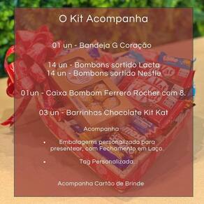 Cesta De Chocolate Formato Coração Com Lindo Laço Presente Tipo: Love Cesta de Chocolates em Formato de Coração - Surpreenda com Carinho e Sabor Essa linda cesta em formato de coração foi criada para transformar momentos especiais em lembranças doces e inesquecíveis. Com uma seleção das marcas de chocolates mais amadas - Lacta, Nestlé, Kit Kat e Ferrero Rocher - ela é perfeita para quem deseja presentear com afeto, elegância e praticidade. Indicada para datas como Dia das Mães, Dia dos Namorados, aniversários, noivados ou para demonstrar gratidão de forma afetiva. Tudo é preparado com cuidado, montado artesanalmente e pronto para ser entregue diretamente na casa de quem você ama, já com mensagem personalizada inclusa. Destaques do Produto: Um presente cheio de afeto: a cesta em formato de coração encanta pela aparência e pelo sabor Praticidade para quem presenteia: entrega direta com mensagem personalizada enviada por você Embalagem com laço decorativo, pensada para emocionar desde o primeiro olhar Ideal para surpreender em ocasiões românticas, familiares ou corporativas Montagem artesanal, com chocolates frescos das marcas mais queridas Conteúdo da cesta: 14 bombons Lacta 14 bombons Nestlé 3 unidades de Kit Kat 1 caixa de Ferrero Rocher Embalagem com laço decorativo Cartão com mensagem personalizada mensagem enviada após a compra Cesta de chocolate presente, cesta em formato de coração, presente dia das mães, presente dia dos namorados, presente romântico com chocolate, cesta com ferrero rocher, kit chocolate lacta nestlé, presente com mensagem personalizada, presente feminino criativo, cesta de bombom com laço, presente de aniversário, presente afetivo com entrega, cesta de chocolates , mimo doce para surpreender, presente pronto para envio