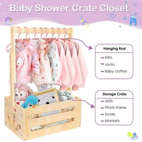 Armário de madeira para bebês, armário de armazenamento para bebês com alça ajustável — Presentes para chá de bebê: o armário de madeira para chá de bebê é ótimo para colocar presentes de chá de bebê! É uma cesta de presentes que representa seus sentimentos, adicionando um toque de elegância ao seu presente. - Design exclusivo: feita de uma única peça e fácil de montar, esta cesta de armazenamento para bebês possui uma alça ajustável. A caixa de madeira mede 12,8 x 9 x 6,7 polegadas, com uma alça que se estende de 19,5 a 27,6 polegadas, adequada para uso decorativo. Ferramentas decorativas estão incluídas. - Personalização DIY: você pode adicionar decoração ao redor da madeira ou personalizá-la da maneira que quiser. Você pode optar por pintar, adicionar ornamentos, decorá-lo com flores artificiais, fitas, etc. Esta caixa de chá de bebê está esperando por sua decoração criativa. - Boa qualidade: feita de madeira de alta qualidade, esta caixa de boas-vindas para bebês é resistente e durável, garantindo que ela possa conter uma variedade de presentes. A superfície é polida, proporcionando uma textura melhor, e as tábuas de madeira dos dois lados têm padrões vazados, tornando-a mais bonita. Esta cesta de presentes para chá de bebê não é apenas funcional, mas também uma obra de arte. - Multiuso: além de ser um presente de chá de bebê, esta caixa é versátil para aniversários, formaturas e muito mais. É perfeito para guardar no berçário, como fraldas e itens do dia a dia, como produtos de higiene pessoal, ou para organizar livros em uma mesa.
