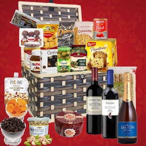 Cesta de Natal VIENA com 21 itens Selecionados Apresentamos a você a deslumbrante Cesta de Natal Viena Surpreenda alguém especial com esta cesta incrível, repleta de 21 itens selecionadíssimos, nacionais e importados, cuidadosamente embalados com todo o carinho e dedicação. 1 Vinho Chileno TARAPACA Cosecha Cabernet 750ml1 Vinho Chileno CHILANO Merlot 750ml1 Espumante Brut Salton 750ml1 Panetone BAUDUCCO Frutas 500g1 PIC-ME Amendoim Integral 200g1 Pasta de Avelã NUTELLA 350g1 Pêssego em Calda Diet São Lourenço 350g1 Figo em Calda São Lourenço 450g1 Goiabada Cascão TIA CARLA 400g1 Doce de Leite Tradicional Portão do Cambui 200g1 Bala Italiana De Goma De Alcaçuz Dietorelle 70g1 Merengue com Chocolate MELARÉ 100g1 Mandolate Cellena 160g1 Pistache Americano Torrado e Salgado CELLENA 200g1 Damasco Turco Cellena 200g1 Macarrão Gomiti COLAVITA Grano Duro 500g1 Tomate Pelado MUTTI Lata 400g1 Azeitona BONDUELLE Verde com Caroço 320g1 Uva Passa Preta FLORA s/ semente FLORA 250g1 Flocos de Arroz Caramelizado FIBRASMIL 100g Completa e Elegante Acompanhando todos esses produtos deliciosos, você receberá uma cesta de vime sintético, tamanho 50x30x21, perfeita para adicionar um toque de sofisticação à sua experiência natalina. Entregamos em Todo BrasilNão importa onde você esteja, nossa cesta será entregue diretamente no endereço que você escolher. Surpreenda alguém mesmo à distância Inclua um Cartão PersonalizadoSe você deseja enviar uma mensagem especial junto com a cesta, basta nos enviar o texto através do campo de mensagens, e nós providenciaremos um lindo cartão personalizado. Faça deste Natal um momento memorável com a Cesta de Natal Viena