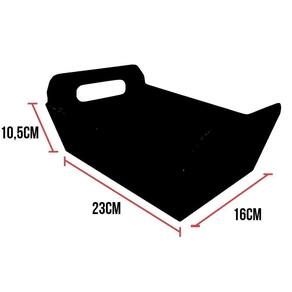 Tamanho M: 16 cm de largura na base, 20 cm na parte superior, 23 cm de comprimento na base, 26 cm na parte superior e 10,5 cm de altura