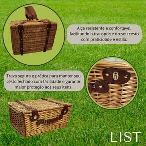 Benefícios: - Design Compacto e Prático: A cesta é ideal para transporte e armazenamento, ocupando pouco espaço, mas comportando tudo o que você precisa para um piquenique. - Material Durável e Resistente: Itens de alta qualidade, como os pratos de melamina e os talheres de aço inox, garantem longa durabilidade. - Versátil: Perfeita para piqueniques, festas ao ar livre, passeios no campo ou até mesmo para um lanche improvisado no jardim de casa.
