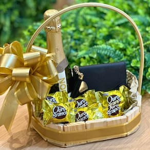 Cesta de Presente Chandon 375ml Bombons Ouro Branco Carteira Kit Presente Feminino com Chandon, Carteira e Bombons - Sofisticação e Delicadeza para Surpreender Um presente encantador que une bom gosto, elegância e carinho. Ideal para datas especiais como Dia das Mães, Dia dos Namorados, aniversários e Natal. O kit contém: