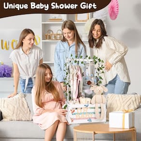 - Presentes exclusivos para chá de bebê: nossa cesta de madeira decorará seu presente para ser um sucesso no chá de bebê! Destaque-se em todos os lembrancinhas de chá de bebê. Itens essenciais para recém-nascidos para amigos, irmãs, irmãos, filhas e filhos no chá de bebê, aniversário, etc.