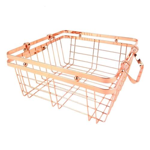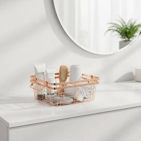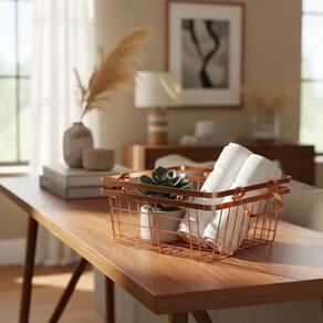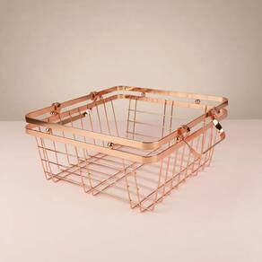 Com alças laterais que facilitam o manuseio, a Cesta Decorativa em Metal Cobre Rose Gold é uma peça prática e elegante que complementa a decoração com um toque contemporâneo e sofisticado.